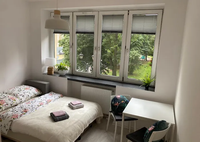 Kawalerki Basi Przy Dabrowskiego 22は,スポデクからちょうど1.1km離れたアパ-トです. このアパ-トメントには1ベッドル-ムと1バスル-ムがあります.